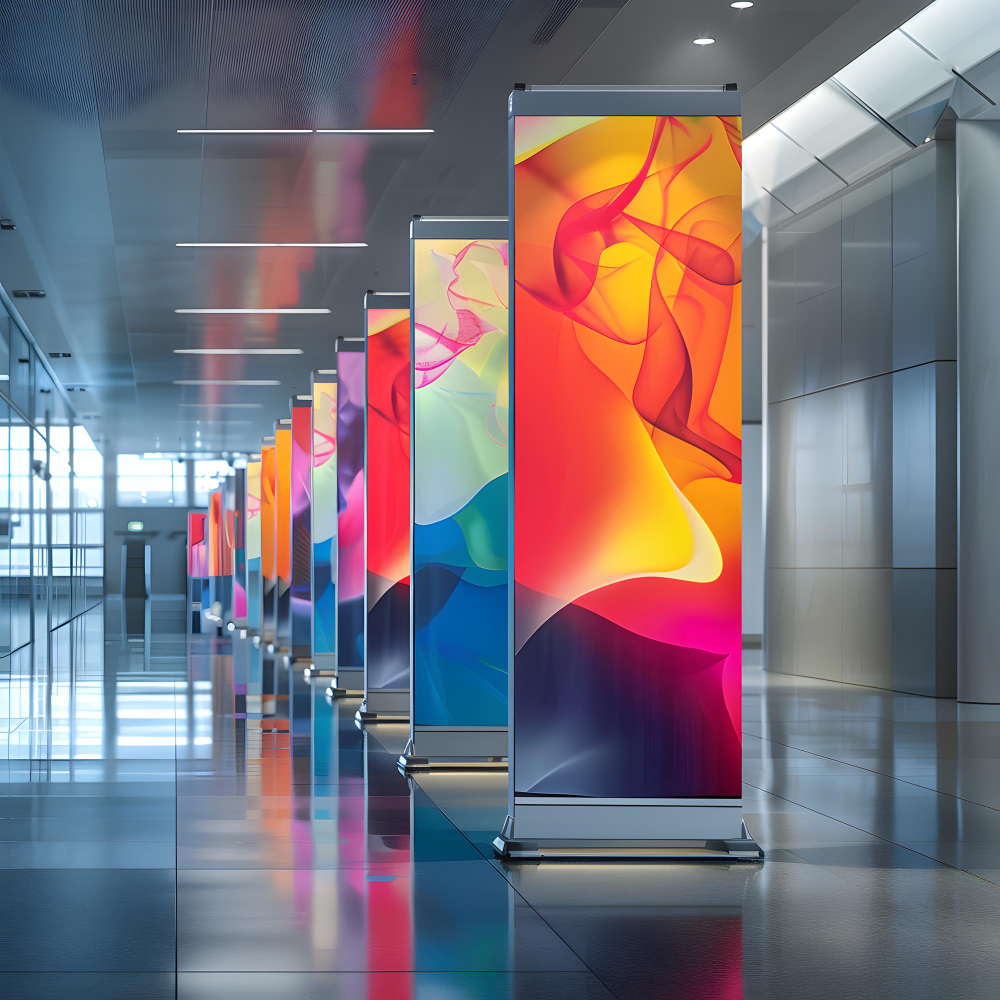 Lonas, pósters y soportes visuales para destacar en escaparates y espacios públicos.